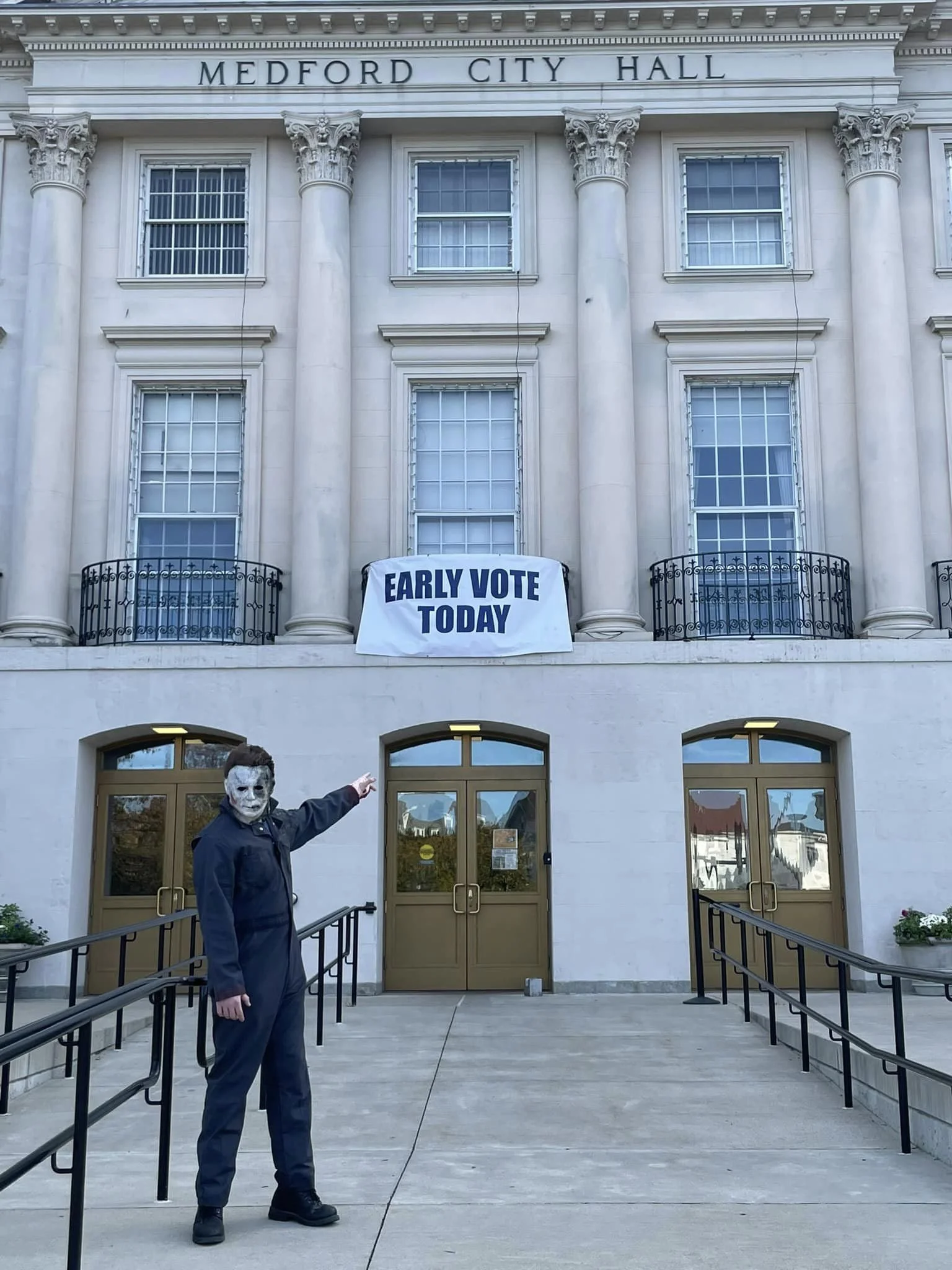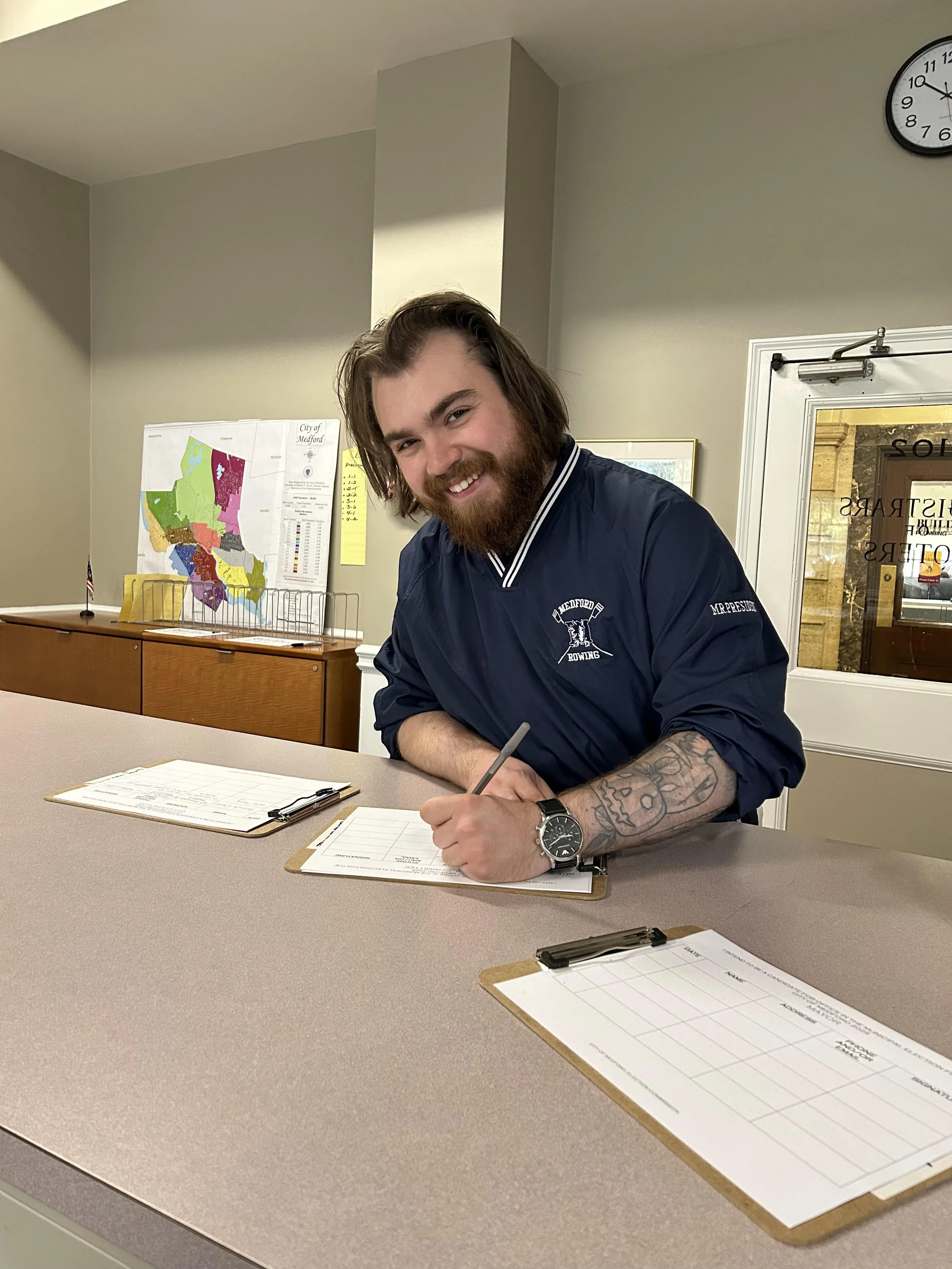 Visiting the Elections Commission Office at Medford City Hall, Room 102.
